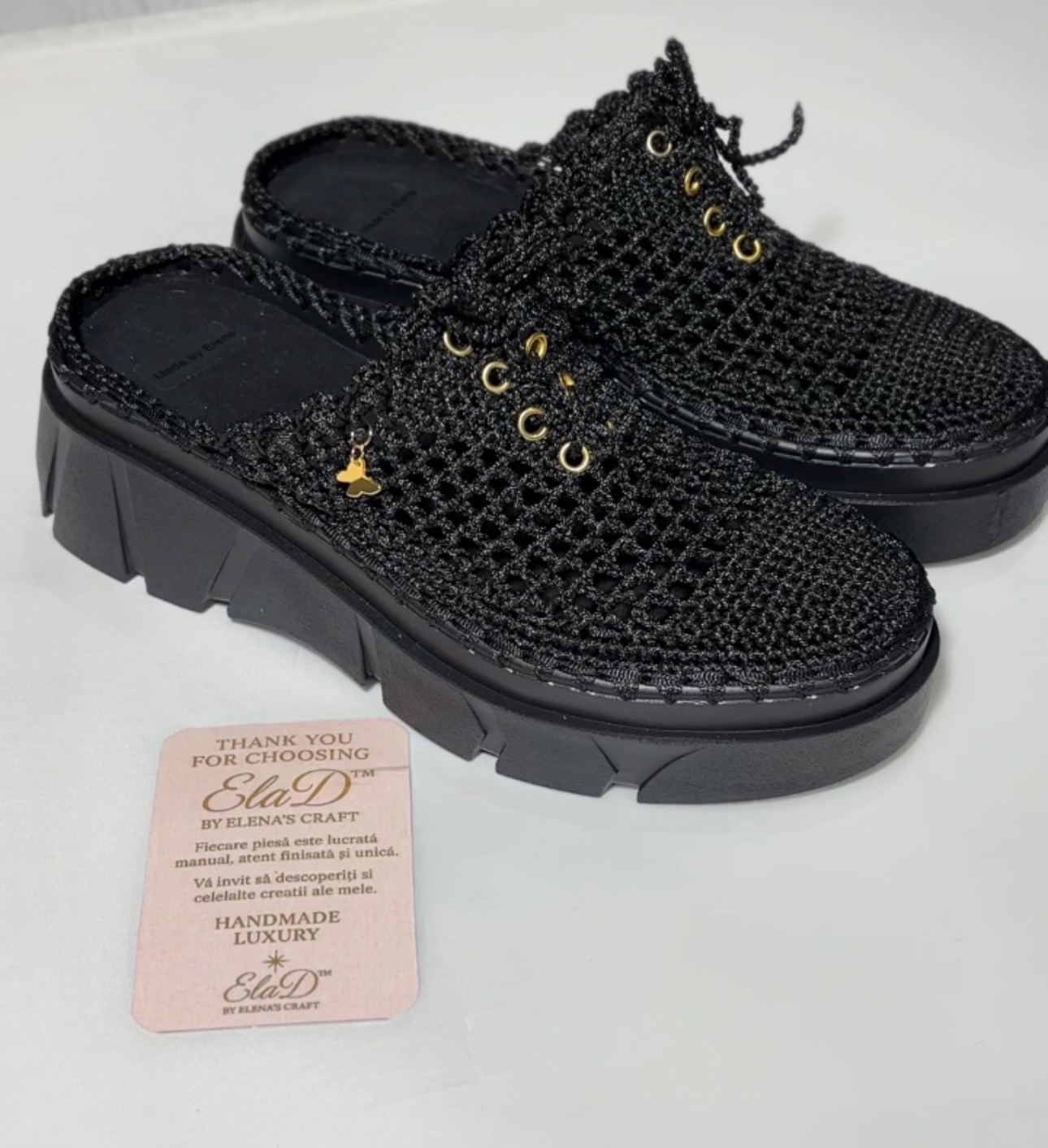 Pantofi handmade croșetați ElaD™ – eleganță și confort într-un design unic