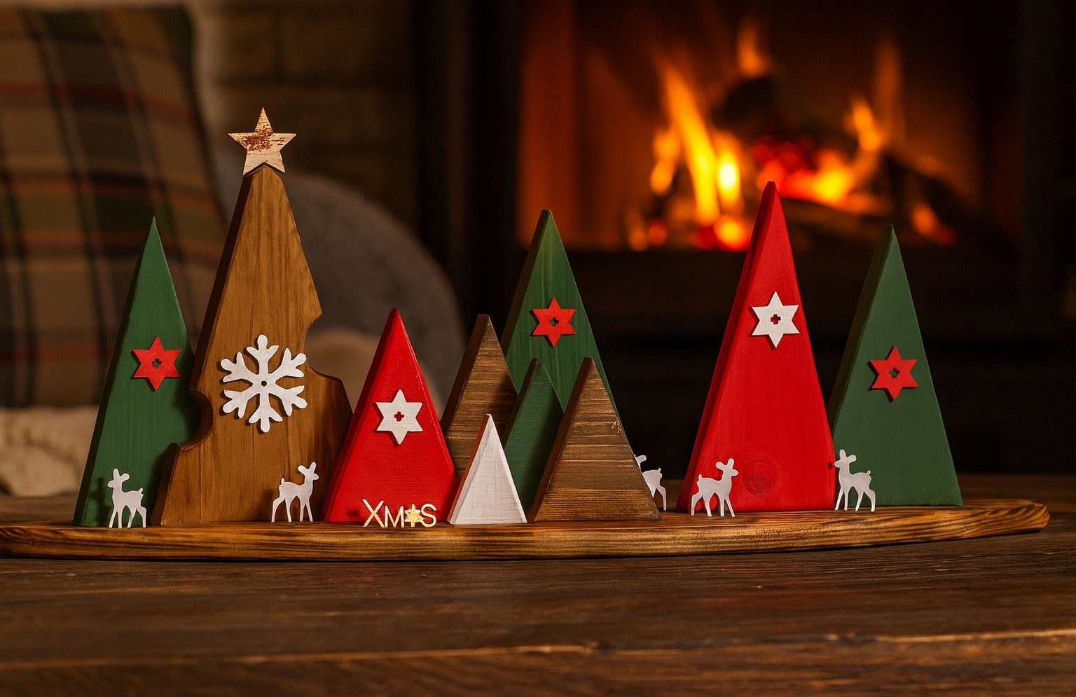Decorațiune de Crăciun din lemn – peisaj festiv rustic