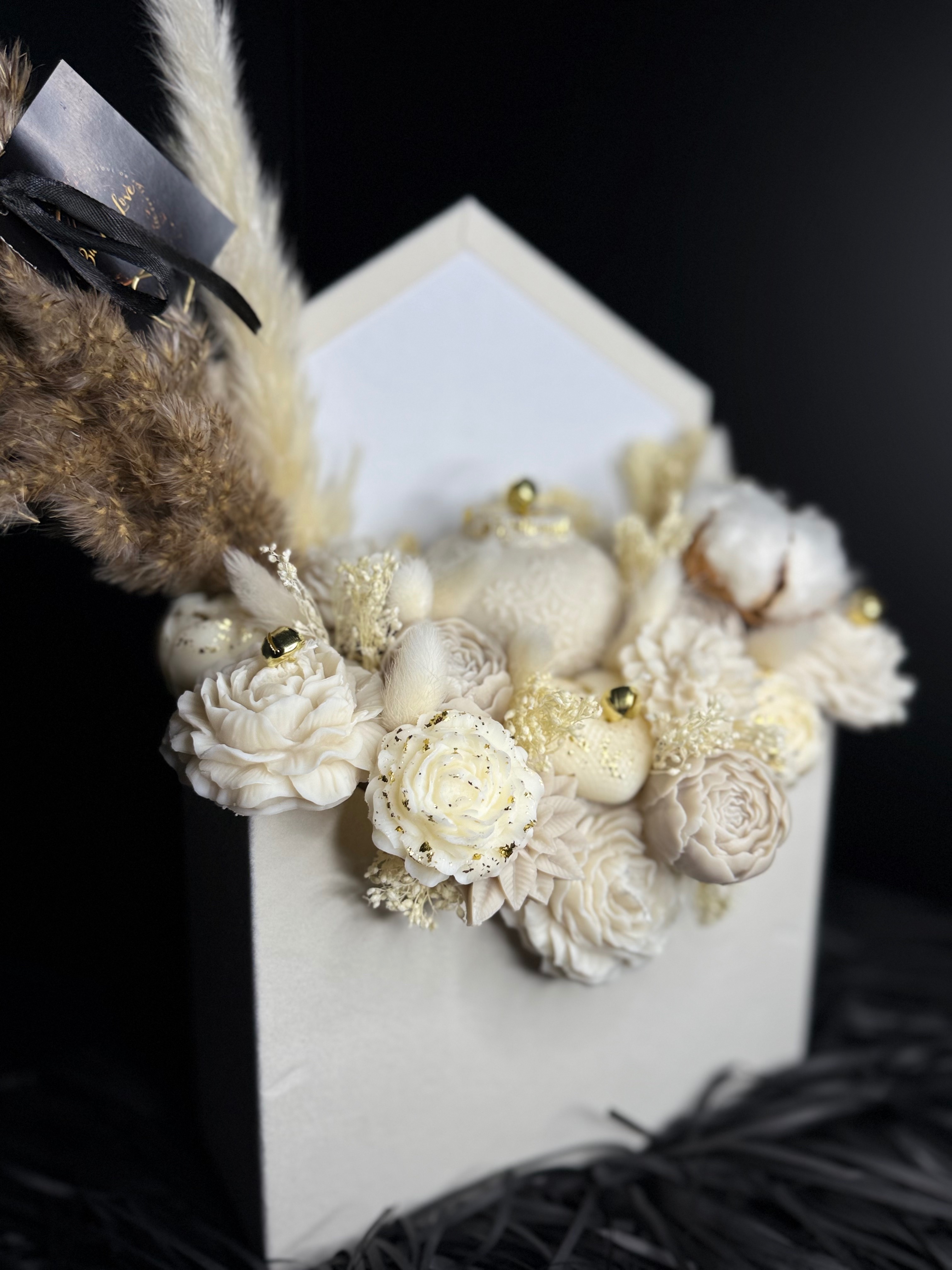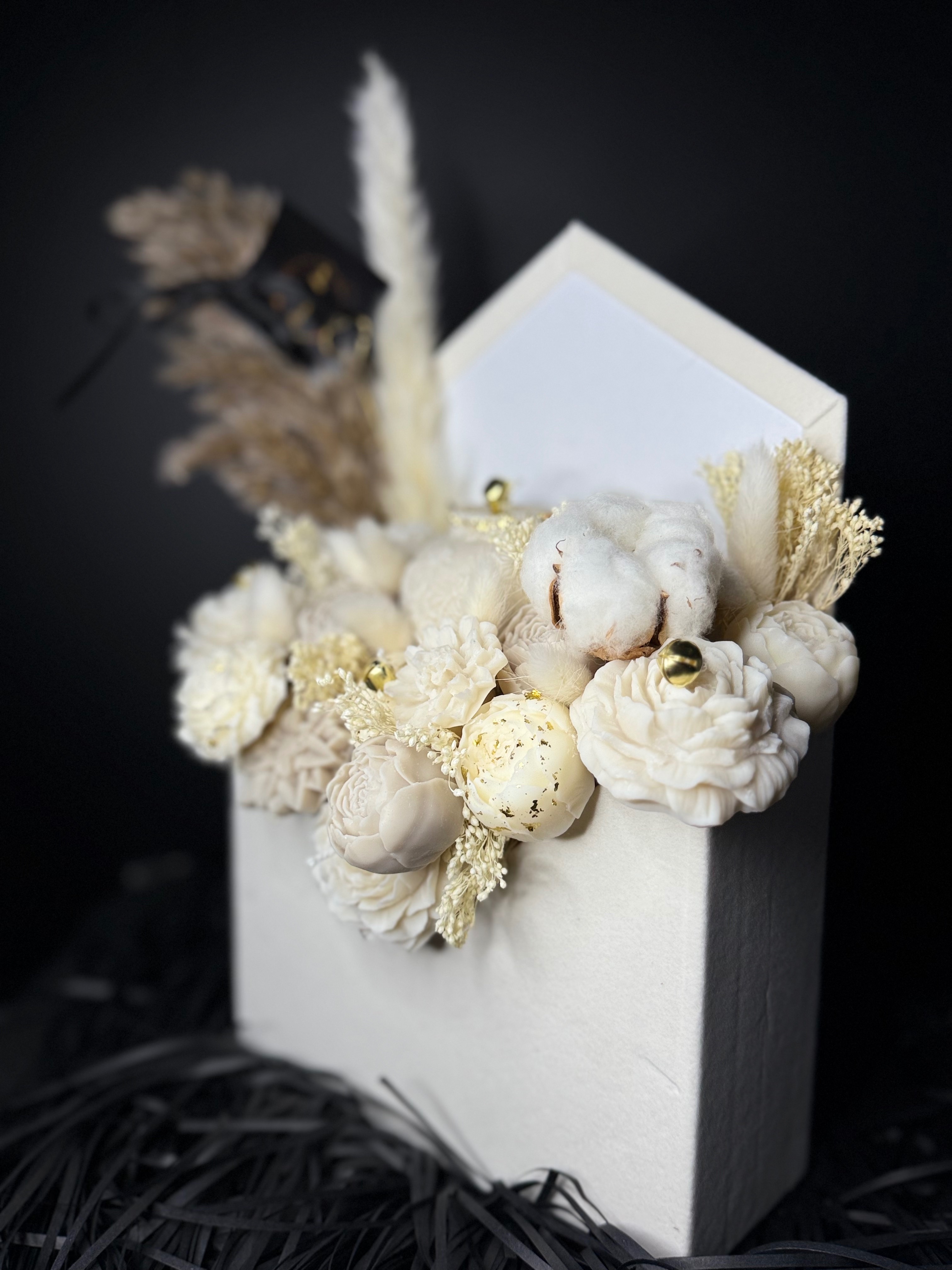 Acest aranjament floral din ceară naturală, realizat manual cu atenție la detalii, redă frumusețea și aspectul autentic al florilor naturale. Este durabil și nu necesită întreținere specială, păstrându-și farmecul ani de zile. Perfect pentru cadouri de sărbători, aniversări sau evenimente speciale, dar și pentru decorarea casei, biroului sau a oricărui spațiu interior care necesită un plus de culoare și eleganță.